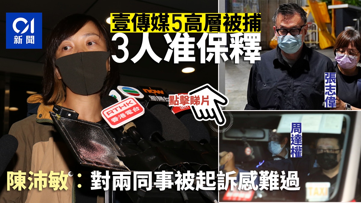 Jun 18, 2021 · 陳沛敏則於丈夫陪同下離開將軍澳警署,她步出警署時表示對於兩同事張劍虹及羅偉光被起訴而未能獲保釋感到難過,希望他們盡早獲保釋。 陳沛敏又指得知於被扣押期間,《蘋果日報》同事以專業緊守崗位繼續採訪及報導,對此感到自豪及感動「盡量做啦我哋